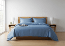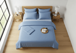 Indulge in the calming embrace of our Serenade Dream Ensemble. This exquisite duvet cover set is designed to transform your bedroom into a peaceful retreat, infused with the soothing hues of a tranquil blue sky.